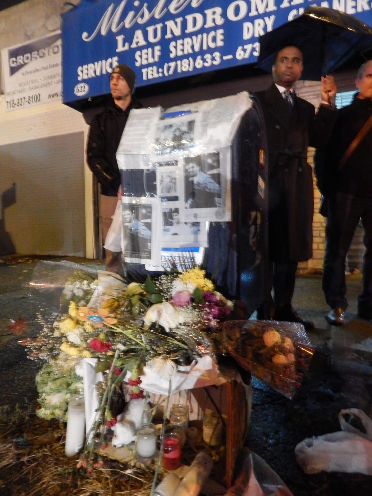 “To have all of you here to remember Naiem, and to hold onto these memories – it’s not enough to overcome the grief, but it’s so important,” Councilman Brad Lander said at the memorial filled with photos and flowers for Naiem at Caton and E. 7th Street.