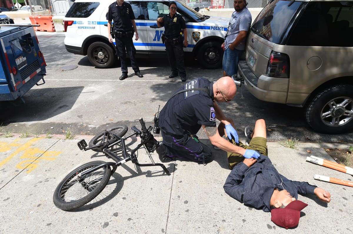 At 49th Street, he was struck by the driver of an unidentified vehicle, knocking the man to the ground. The driver sped away. The bicyclist was taken to NYY Langone Brooklyn with non-life threatening injuries.