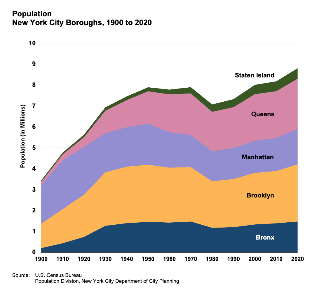Brooklyn is just 2,100 people shy of its 1950 population peak, according to the NYC Department of City Planning.
