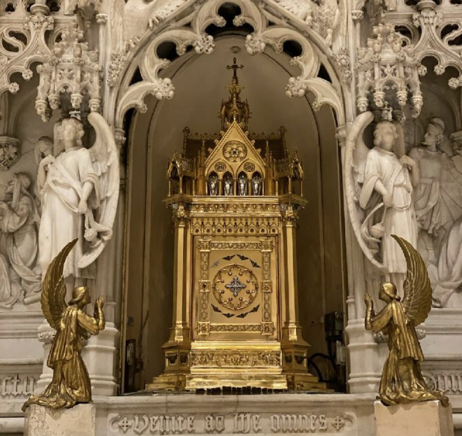 - A historic Tabernacle worth some $2 million was stolen from St. Augustine Catholic Church in Park Slope. There were many stories about it, all restating what the Brooklyn Diocese said: "The burglar cut through a metal protective casing and made off with the Tabernacle, which dates back to when the church was built in the late 1800s. This holy sacramental receptacle is irreplaceable due to its historical and artistic value. The angels which flanked the Tabernacle were decapitated and destroyed, and the Holy Eucharist housed inside the Tabernacle was thrown all over the altar."