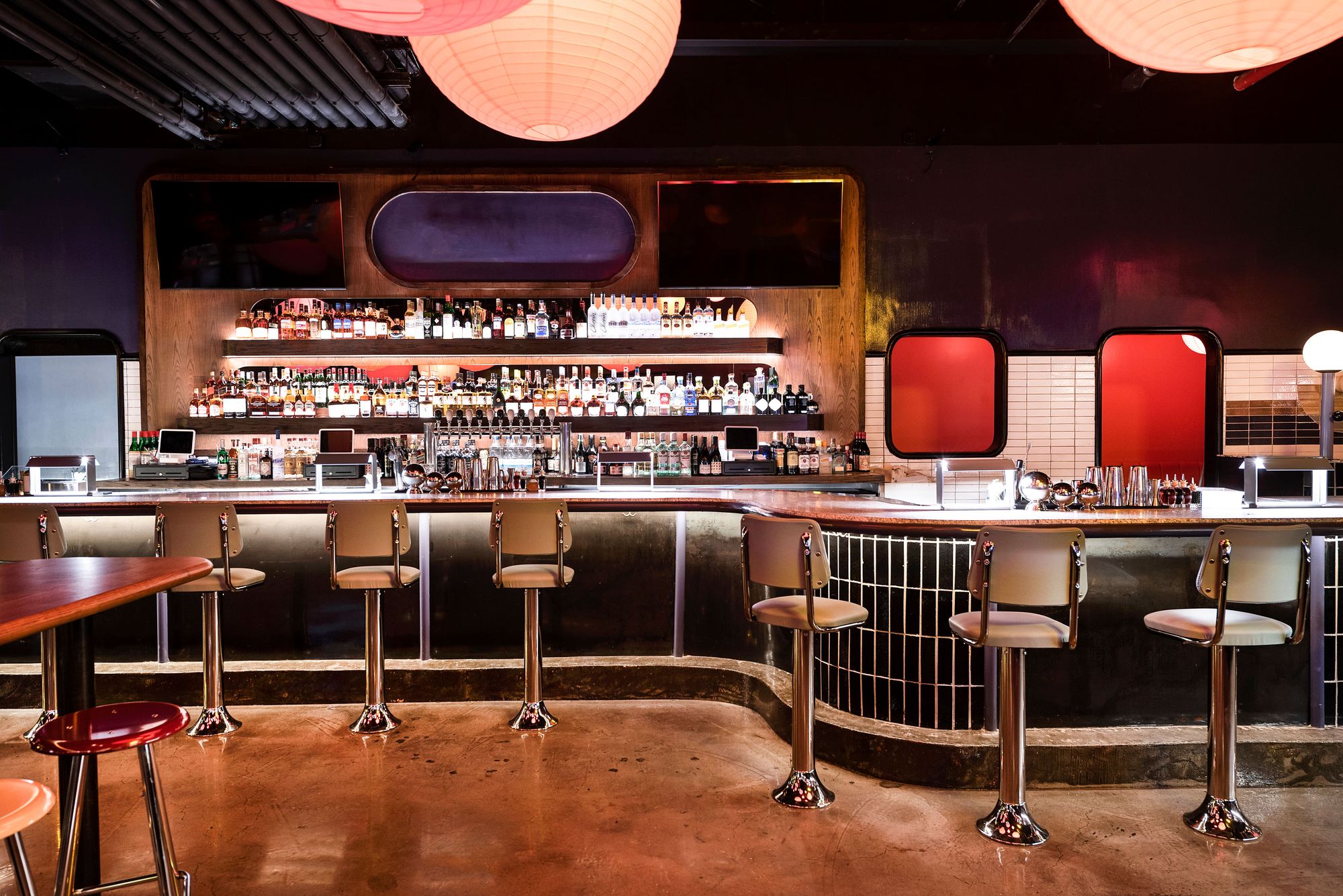 Designed by Greenpoint’s HOME Studios, Understudy features blue and white tiled walls, blue and red cushioned banquettes, and cozy nooks where patrons can enjoy their drinks.