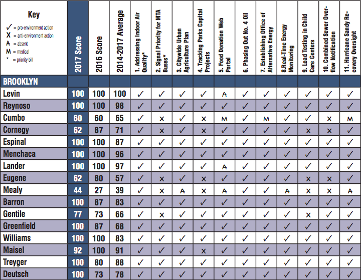 The New York League of Conservation Voters’ recently published 2017 Scorecard shows the majority of Brooklyn’s Councilmembers have perfect records supporting environmental legislation—but a few members of the delegation are well behind.