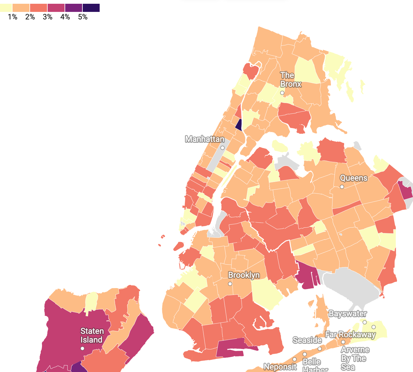 As of today, just 4.5 million or 53.5% of the city's residents have been vaccinated, according to city data.  An average of 516 people a day tested positive over the last seven days, or 1.69% of those who got tested, though much of Brooklyn is already well above 2% infection rates.
