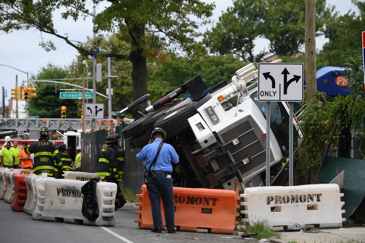 Officials were requesting heavy-duty tow to right the vehicle and Avenue U between East 9th Street and Ocean Parkway was closed to traffic.