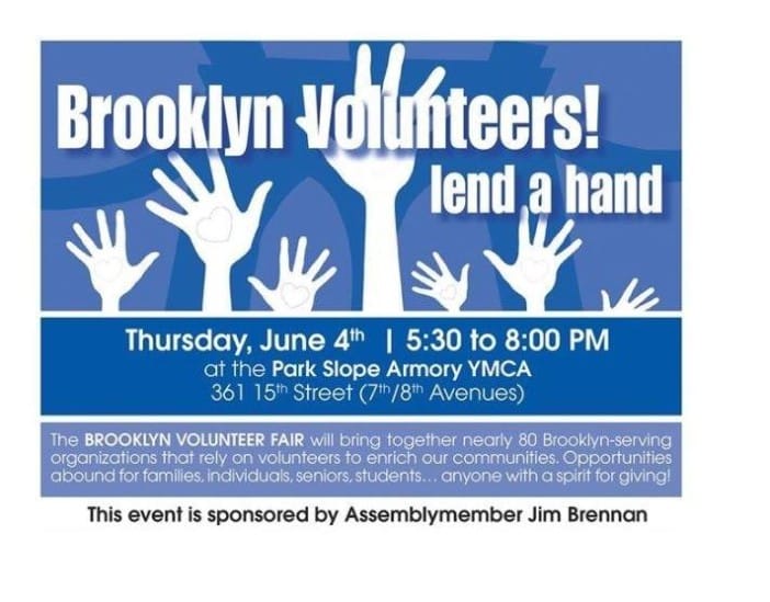 Looking for a way to get more involved in your community? Find out about a variety of volunteer opportunities at the 2015 Brooklyn Volunteer Fair on Thursday, June 4 from 5:30-8pm at the Park Slope Armory on 15th Street between 7th and 8th Avenues.
