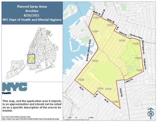 Trucks will spray pesticide in parts of Brooklyn in the evening of Thursday, August 26