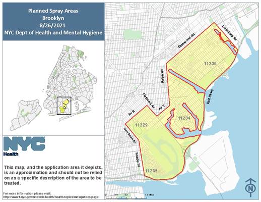 Trucks will spray pesticides in sections of Brooklyn on Thursday, August 26, between the hours of 8:30 p.m. and 6 a.m. the following morning, weather permitting. In case of bad weather or equipment malfunctions, the application will be delayed until Monday, August 30, DOH informs.