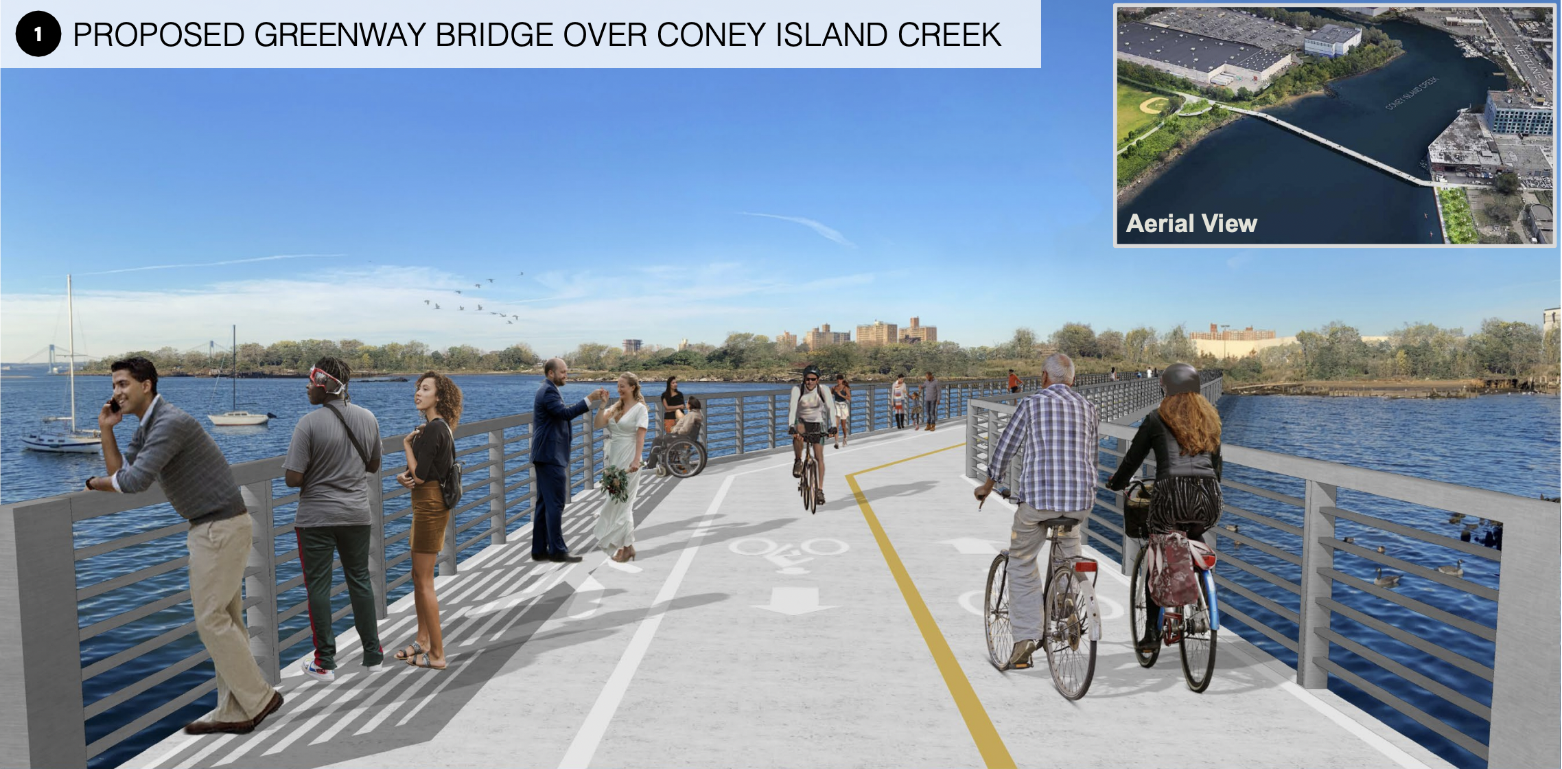 - Greenways: Mayor Adams announced he's including $47.6 million in next year's budget for Brooklyn and Queens' greenway improvements outlined in Destination: Greenways! to connect existing greenway routes in central Queens and along Brooklyn’s southwest shoreline. In Brooklyn, it means connecting Bay Ridge with Coney Island and adding a bridge across Coney Island Creek: