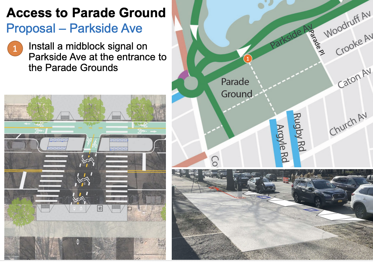 I could never understand why the Parade Ground entrance facing Prospect Park had no crosswalk. The sports fields stretch over 40 acres, offering everything from soccer to basketball to baseball to tennis courts, serving tens of thousands of residents.