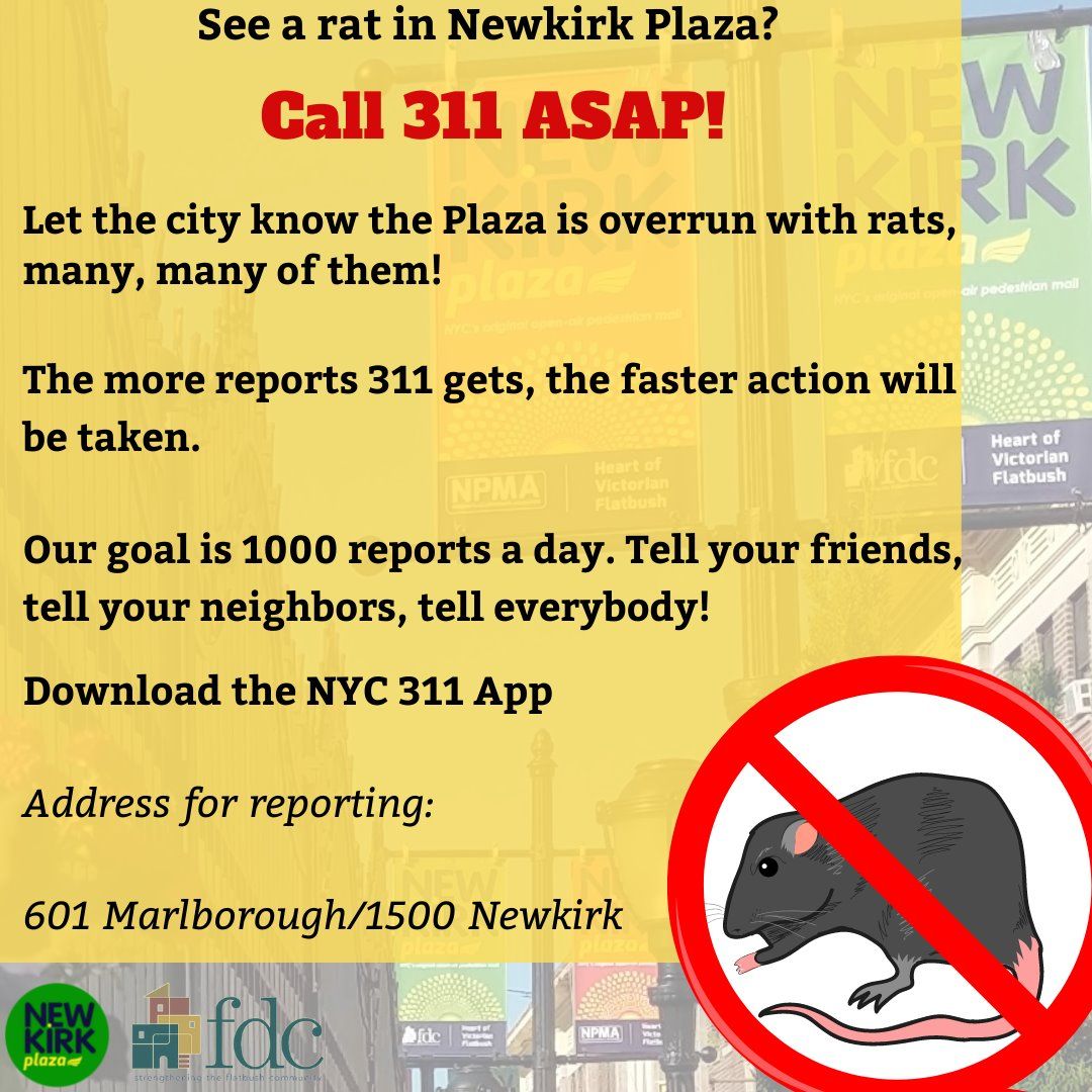 "Newkirk Plaza is overrun with rats, flanked by neglected properties, and the city still refuses to address the issue of ownership," starts the email from the Executive Director of the Flatbush Development Coalition Robin Redmond with a call to action, informing of an upcoming neighborhood demonstration and press conference this Thursday to address longstanding issues at the Newkirk Plaza.