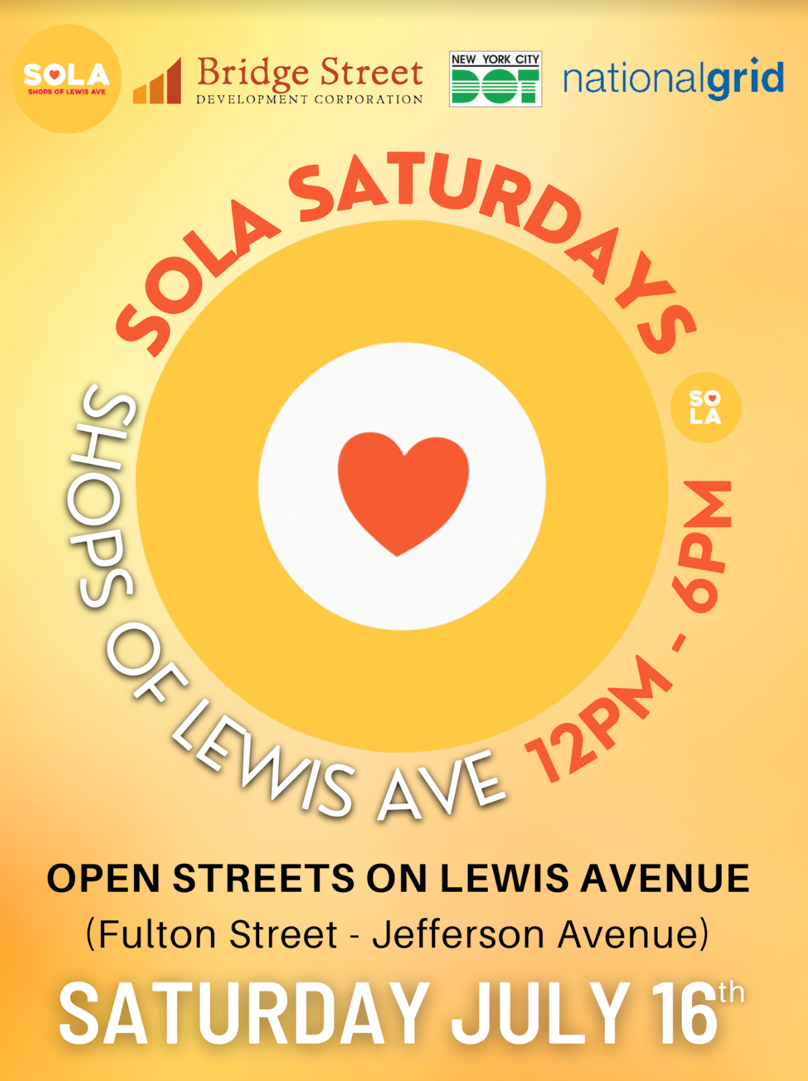 - Artswalk and Cultural Festival will take place this Saturday on Lewis Avenue Open Streets (Fulton to Jefferson). “The Art Of Sola” art fair will be hosted by Joseph C. Grant Jr and include Lyndon “McCrayola” McCray, Tonia A Townes, Glori B., and others. Live jazz will start at 2:30 pm across from MS 35 – where the Black Cowboys will be offering horse rides for kids. Titled “Sample Sale,” the live music is curated by poet and community activist Tai Allen.