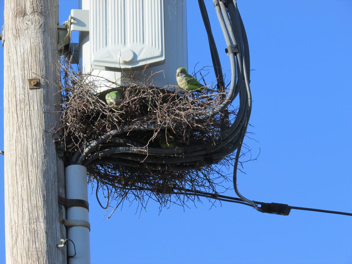 These monk parakeets were spotted nesting on a telephone pole on Hart Place in Coney Island.