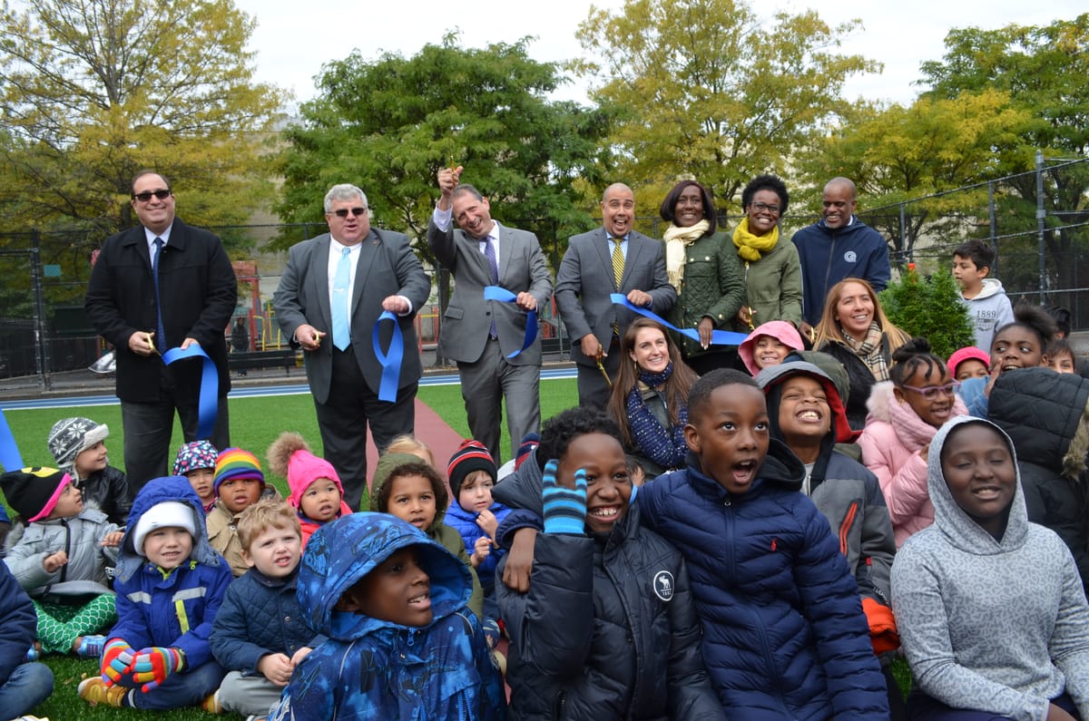 Students Help Cut Ribbon For New ‘Green’ Playground At P.S. 282