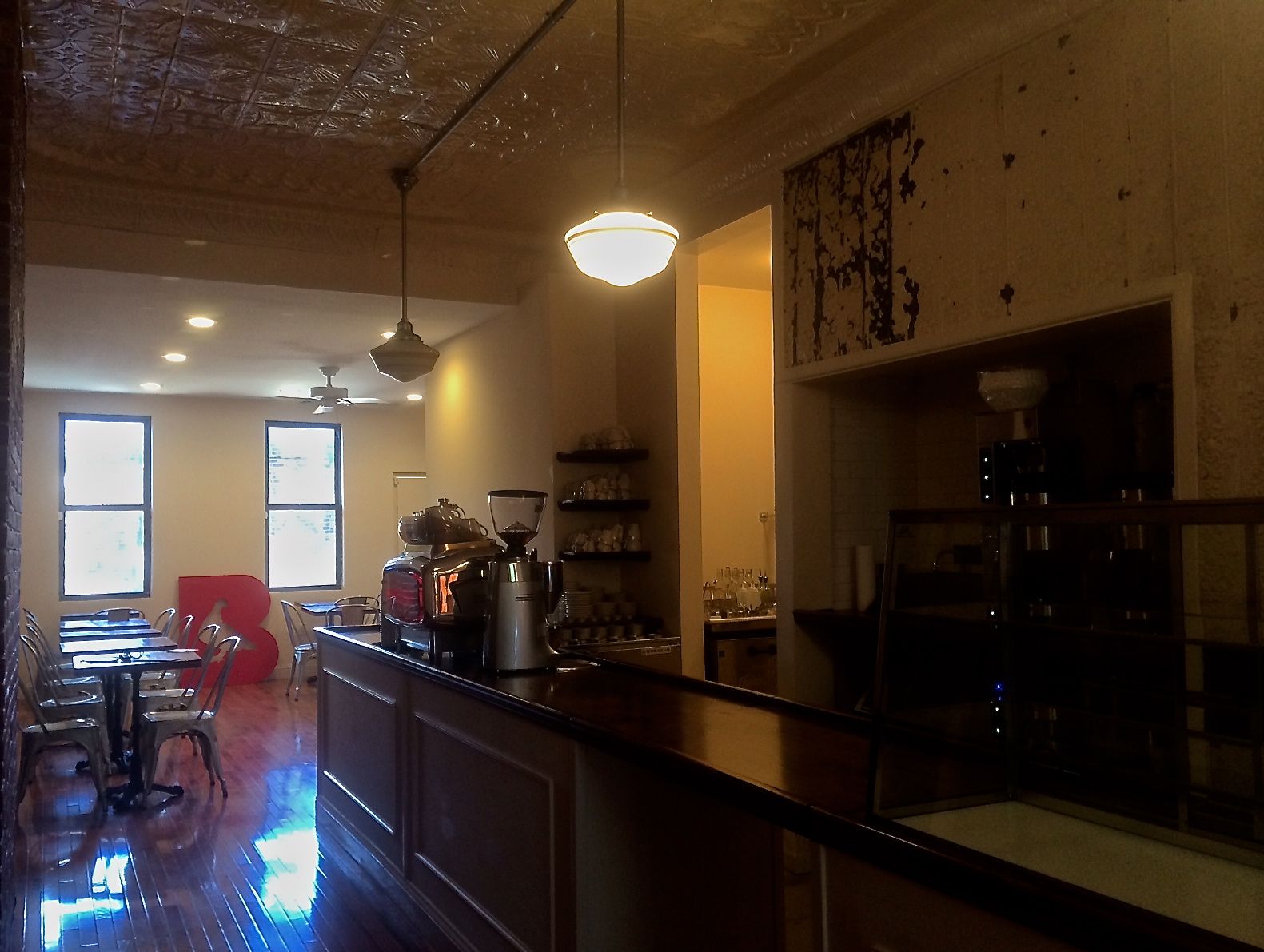 The Farrellys’ relationship with their landlord is one thing that makes Brewklyn Grind Roasters such a special place. The café’s pressed tin walls, left largely untouched, speak of the property’s history; its renovations were facilitated by Adam Heyman, a college classmate of Alain’s, and a neighbor of Alain’s father in law; and they’ve collaborated with Andy Schulz, formerly of South Slope’s De Luxe–a friend since BKG “tried to sell him [their] beans”–to perfect their offerings.