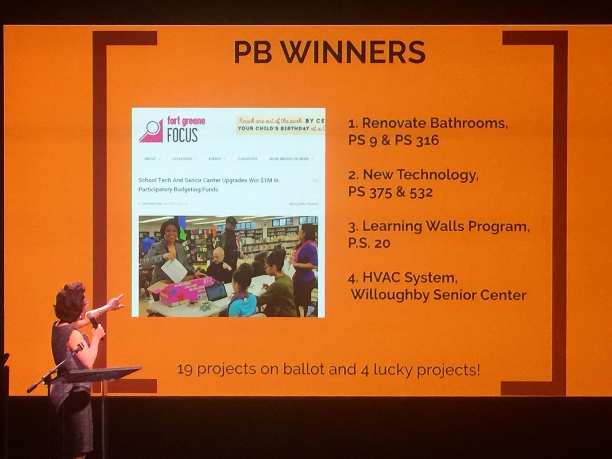 Councilmember Laurie Cumbo knows where to go for news.Gentrification and affordable housing dominated the discussion Monday night at Council Member Laurie Cumbo [http://council.nyc.gov/d35/html/members/home.shtml]‘s second annual [/blog/2015/03/02/cumbo-emphasizes-community-teamwork-state-district-address/] “State of the District” address. Cumbo updated her constituents in