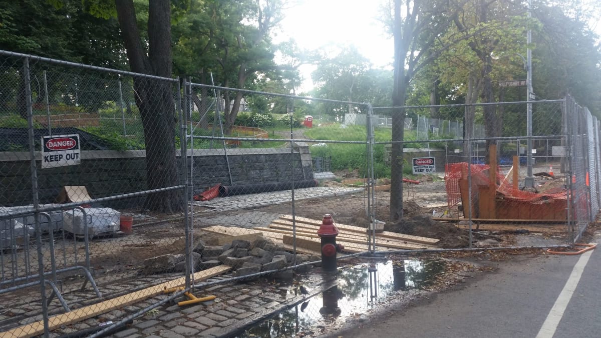 Several people have asked us what the status of construction is over at the Willoughby Avenue entrance to Fort Greene Park and after asking around, it still seems to be on track for a November completion.