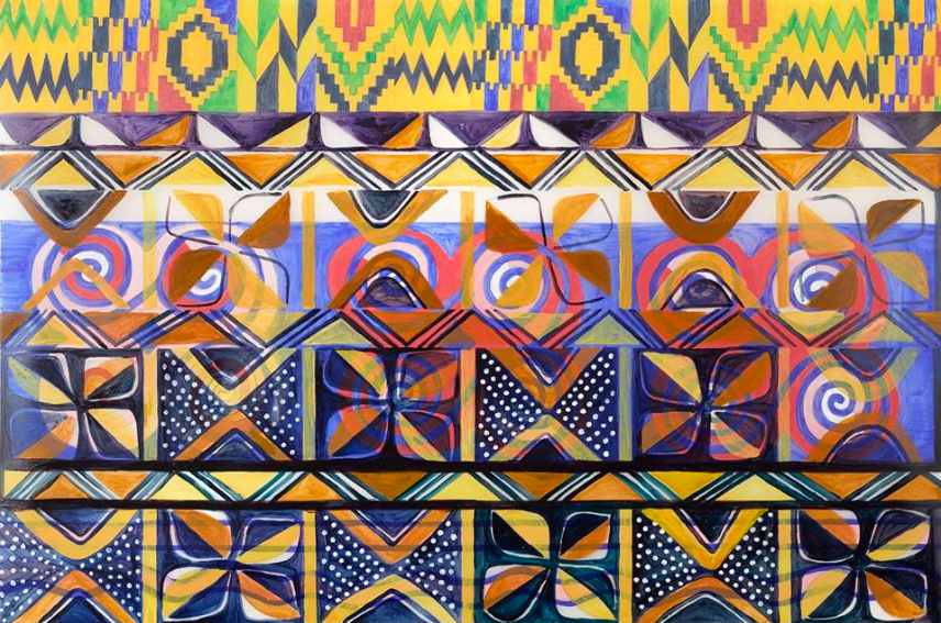 What: Artist Trish Townes‘ first exhibition at 440 Gallery features abstract paintings based on designs from Islamic, Chinese, Tibetan, East Indian, Nigerian, and Malian cultures created on transparent mylar sheets. The sheets are painted on both sides, with one side displaying the colors of the American flag. Townes hopes “that showing harmonious composition of the different designs may inspire people to work and live peacefully together.”
