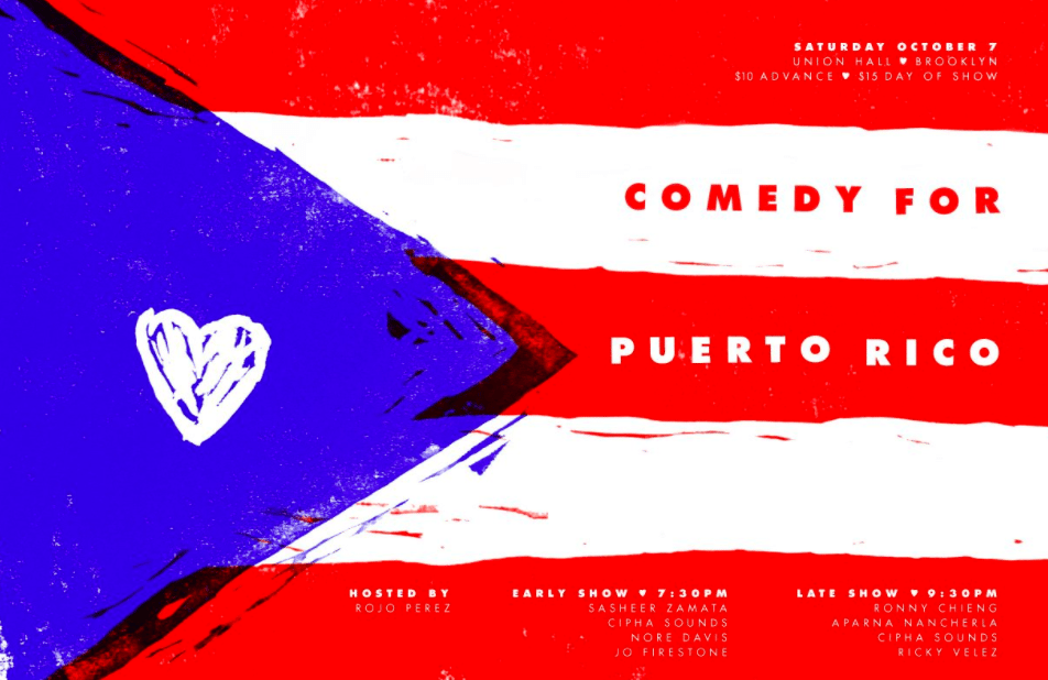 What: Rojo Perez hosts this early show featuring Sasheer Zamata, Cipha Sounds, Jo Firestone and Nore Davis. All proceeds from the show will be donated to Unidos Por Puerto Rico.